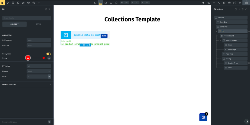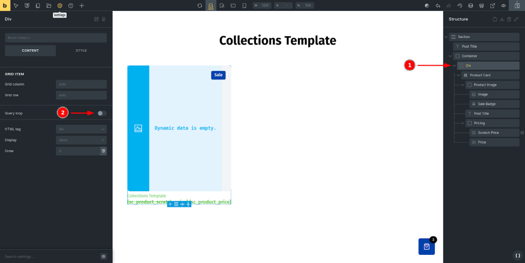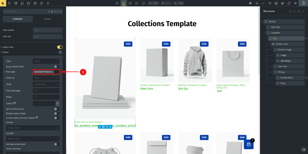 This guide will cover the key steps for setting up a collection template in Bricks Builder with SureCart’s integration.
