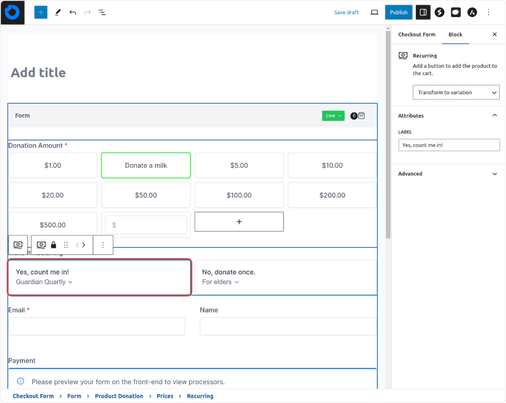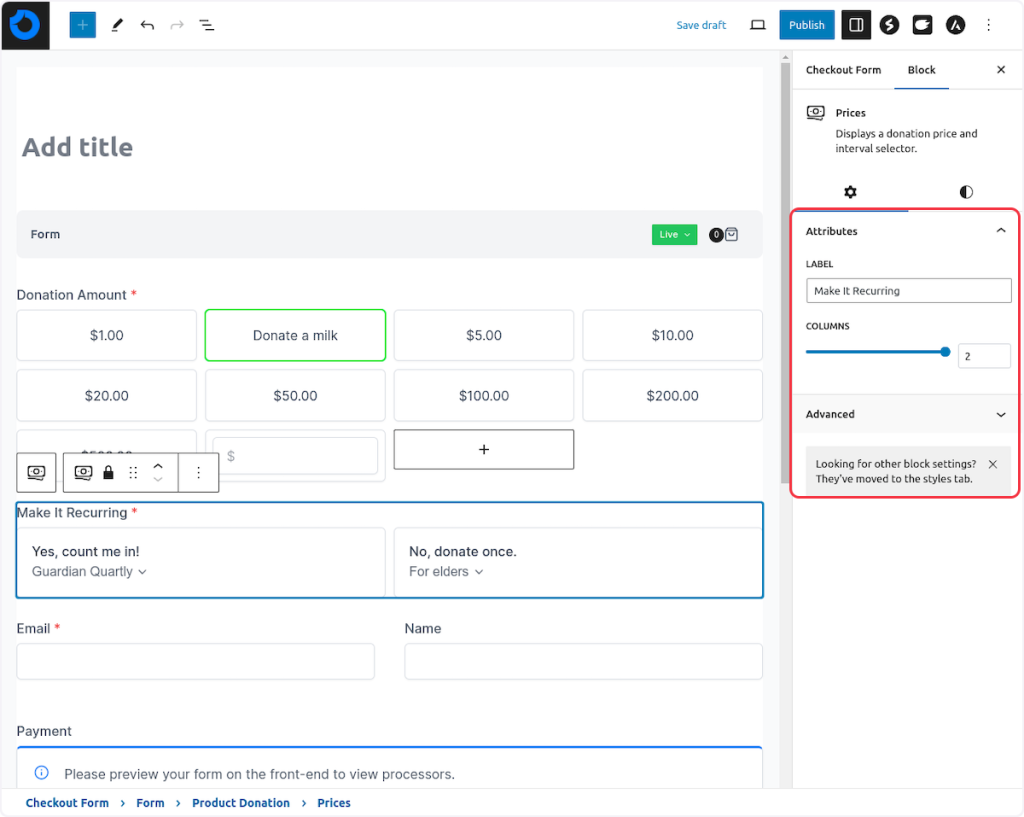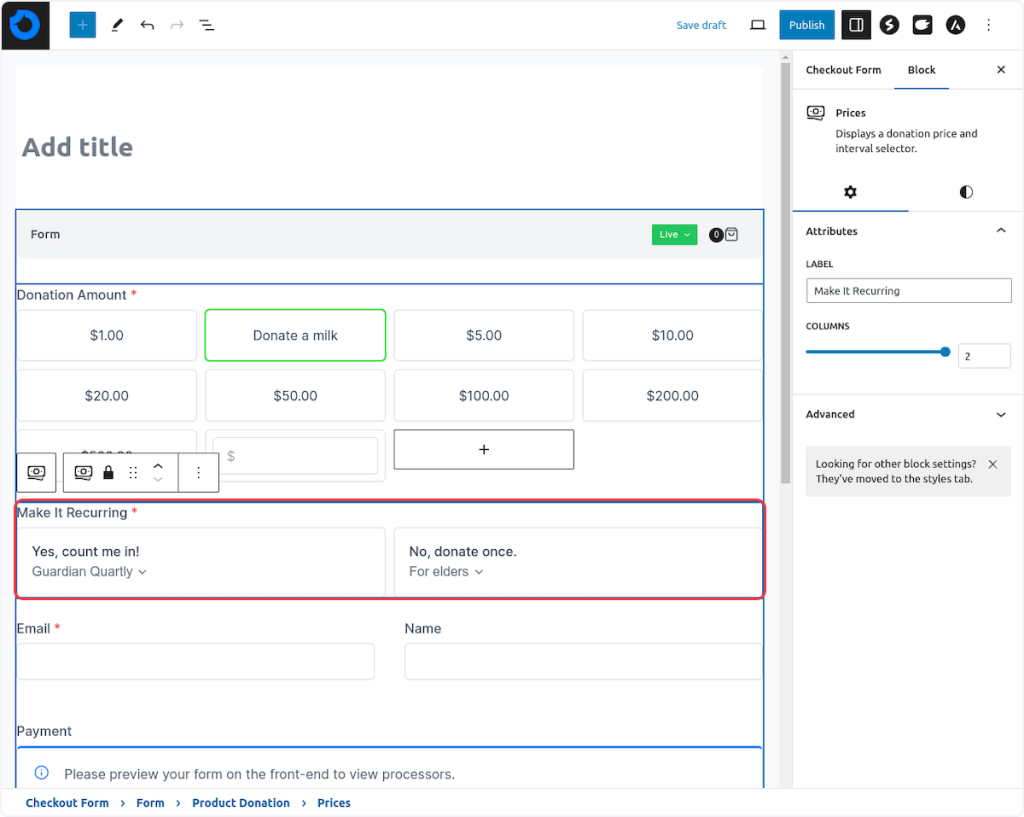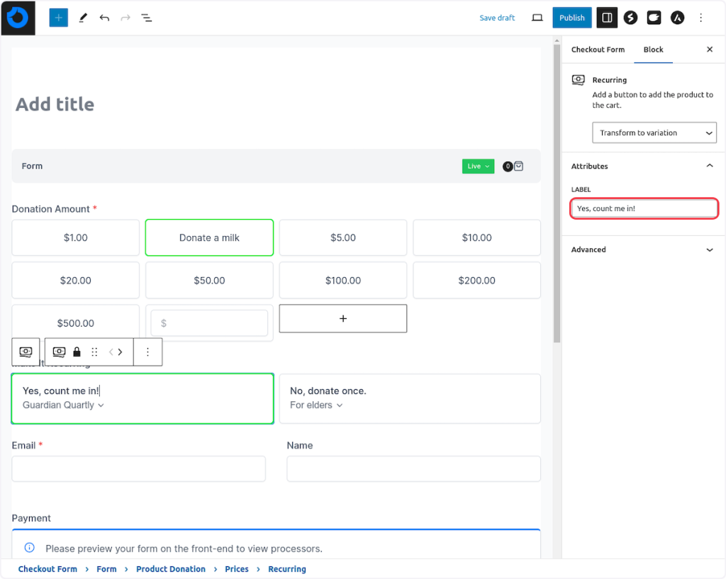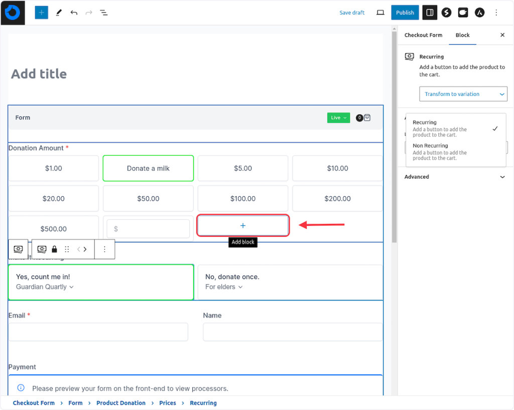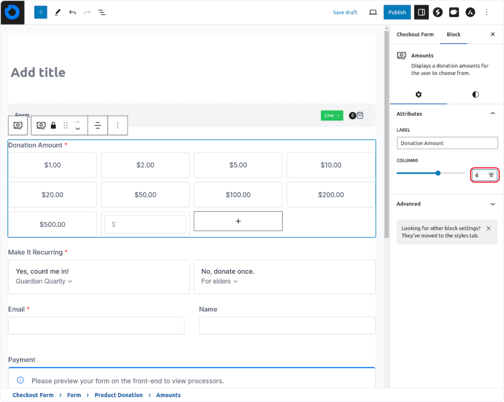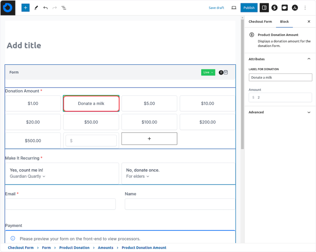 This tutorial will guide you through using these features to craft a donation form tailored to your site’s needs.