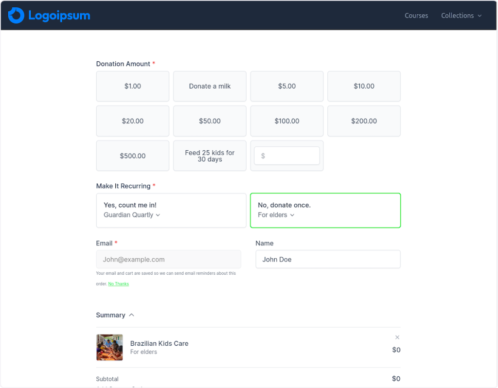 When people can donate regularly, it makes things easier for them. They don’t have to keep coming back to donate every time. This makes it more likely they’ll stick around and keep supporting you. Plus, it’s a great way for you to reach your big goals because you know you’ve got ongoing help. Having both these options, a donation form and the choice for recurring support, can make a huge difference in keeping your projects or goals rolling forward.
