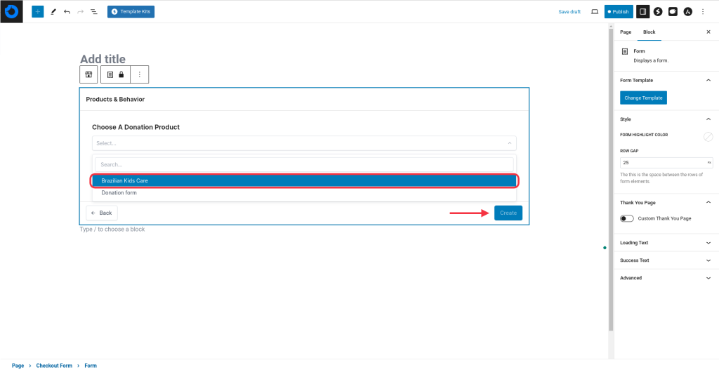 - Select the Donation form and click on the “Next” button to choose to continue.