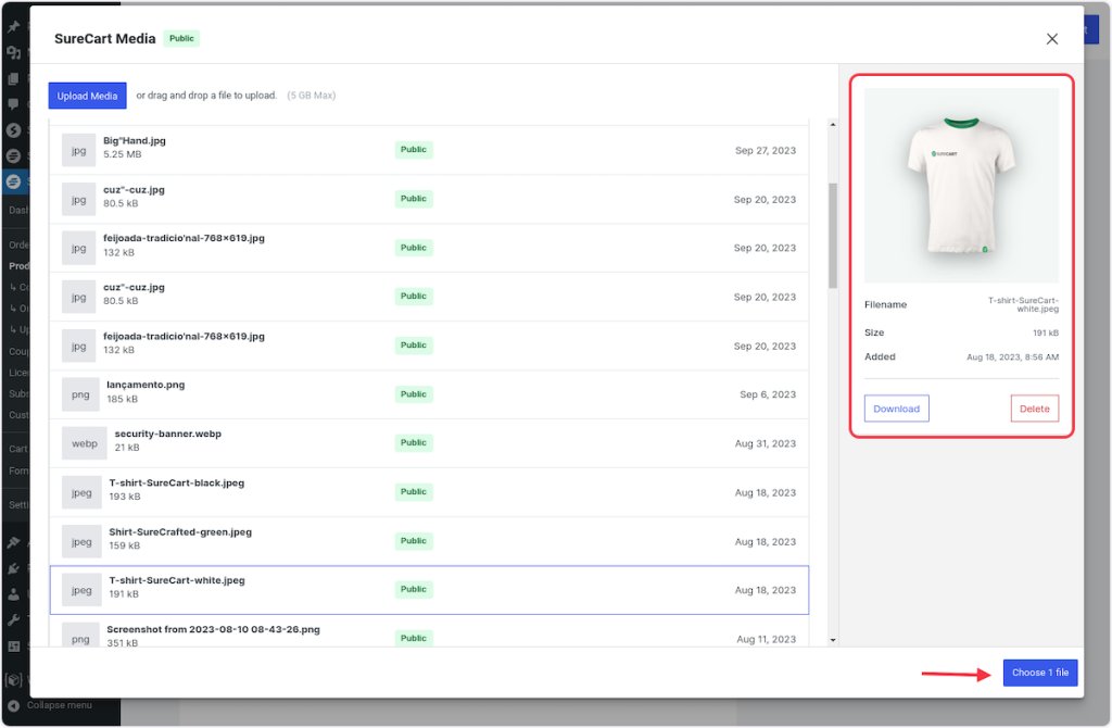 - Upload or select the image that represents this variant, and then click the “Choose 1 file” button.