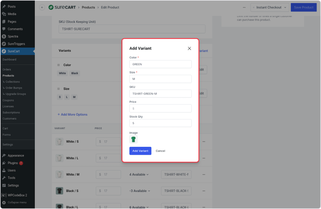 - Enter all the details of the variant, and once you are content with the changes, click on the “Add Variant” button.