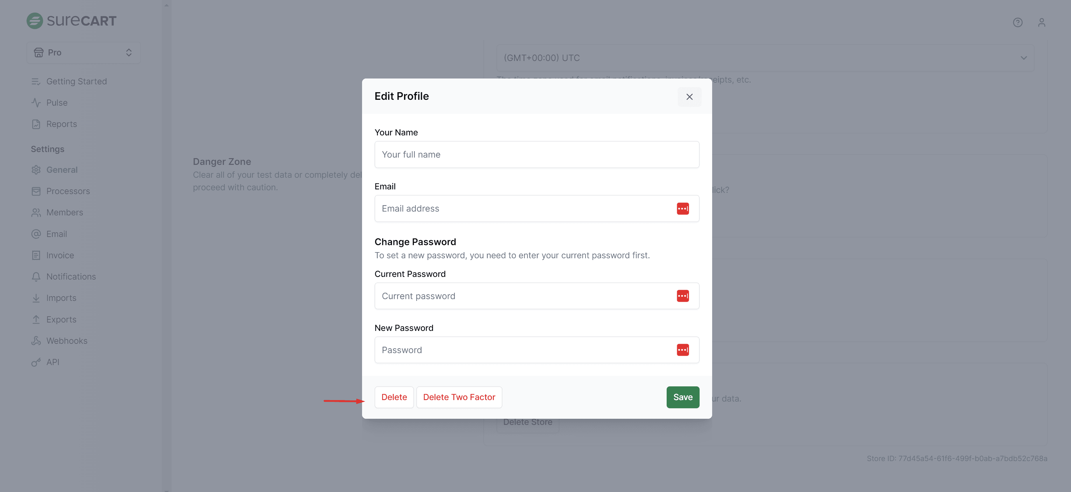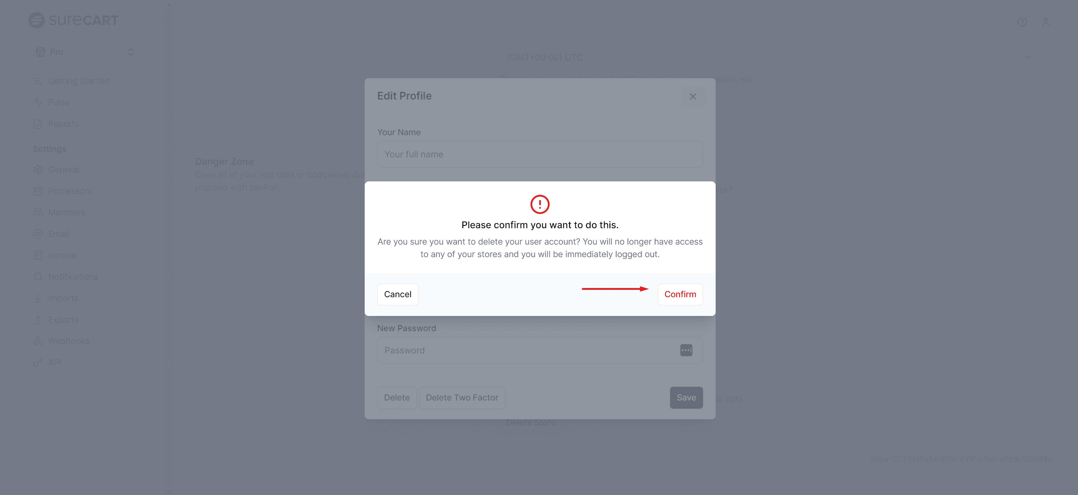 Be very careful while following these steps as it will result in the permanent deletion of your SureCart store as well as all the data associated with it.