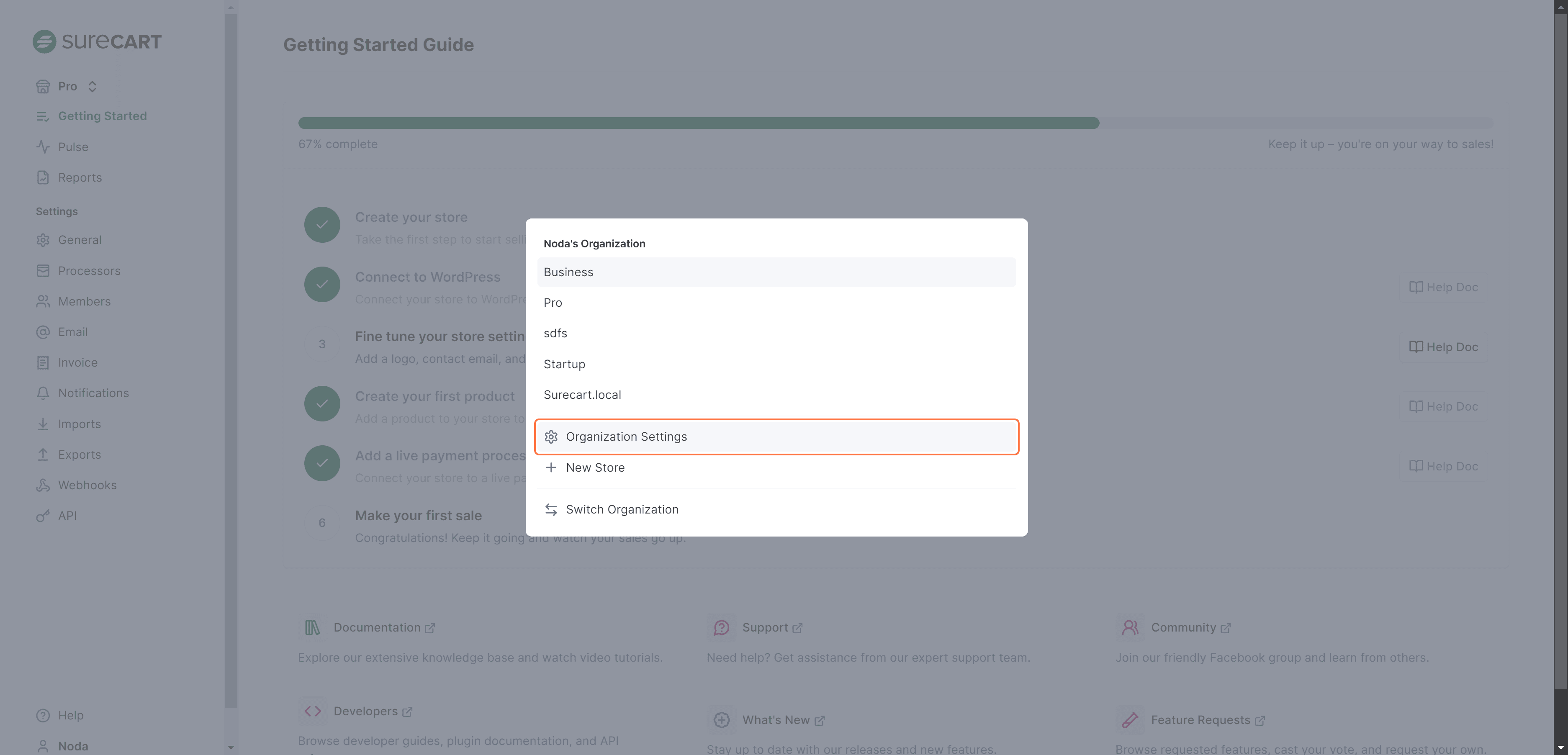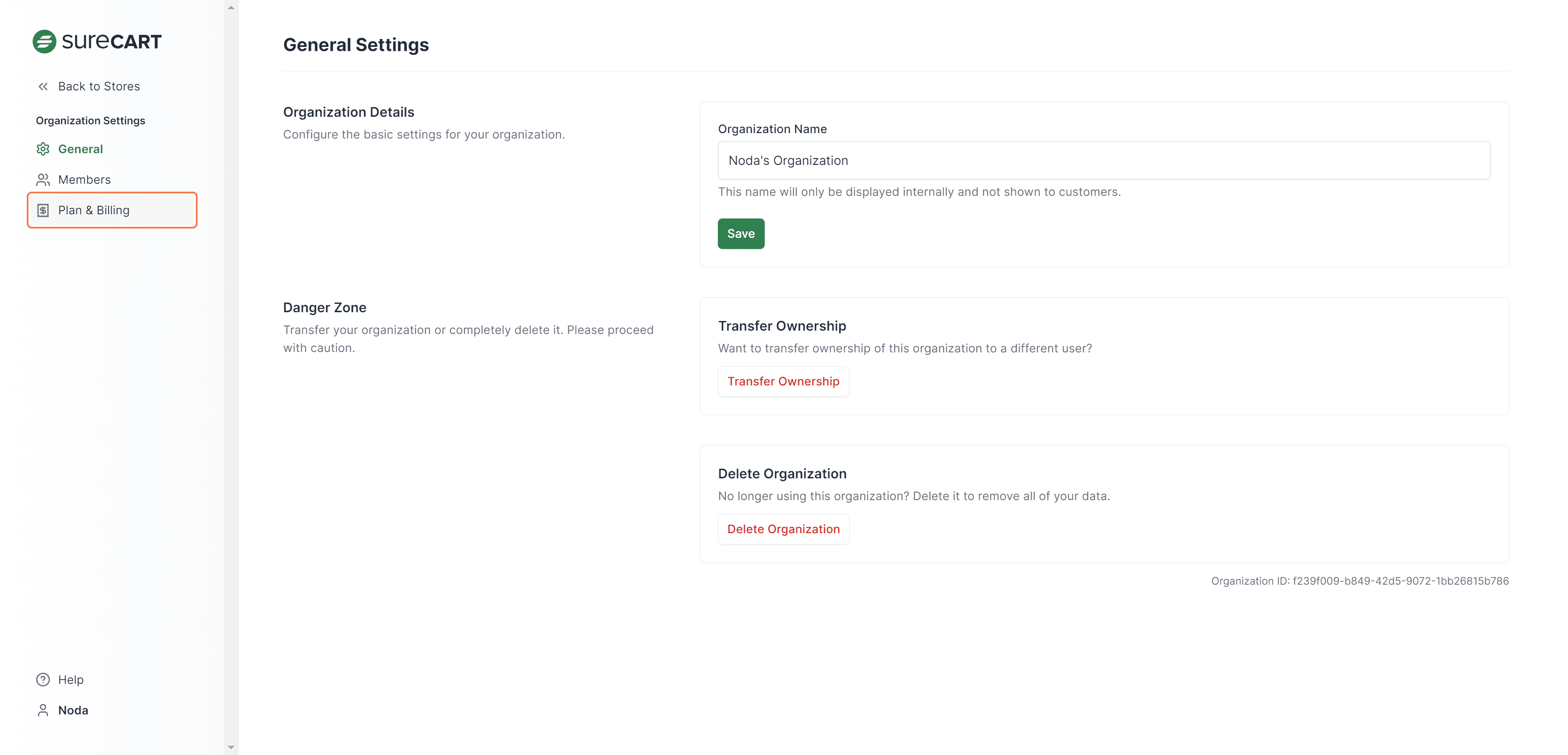 - Open https://app.surecart.com and navigate to your Store > Organization Settings
