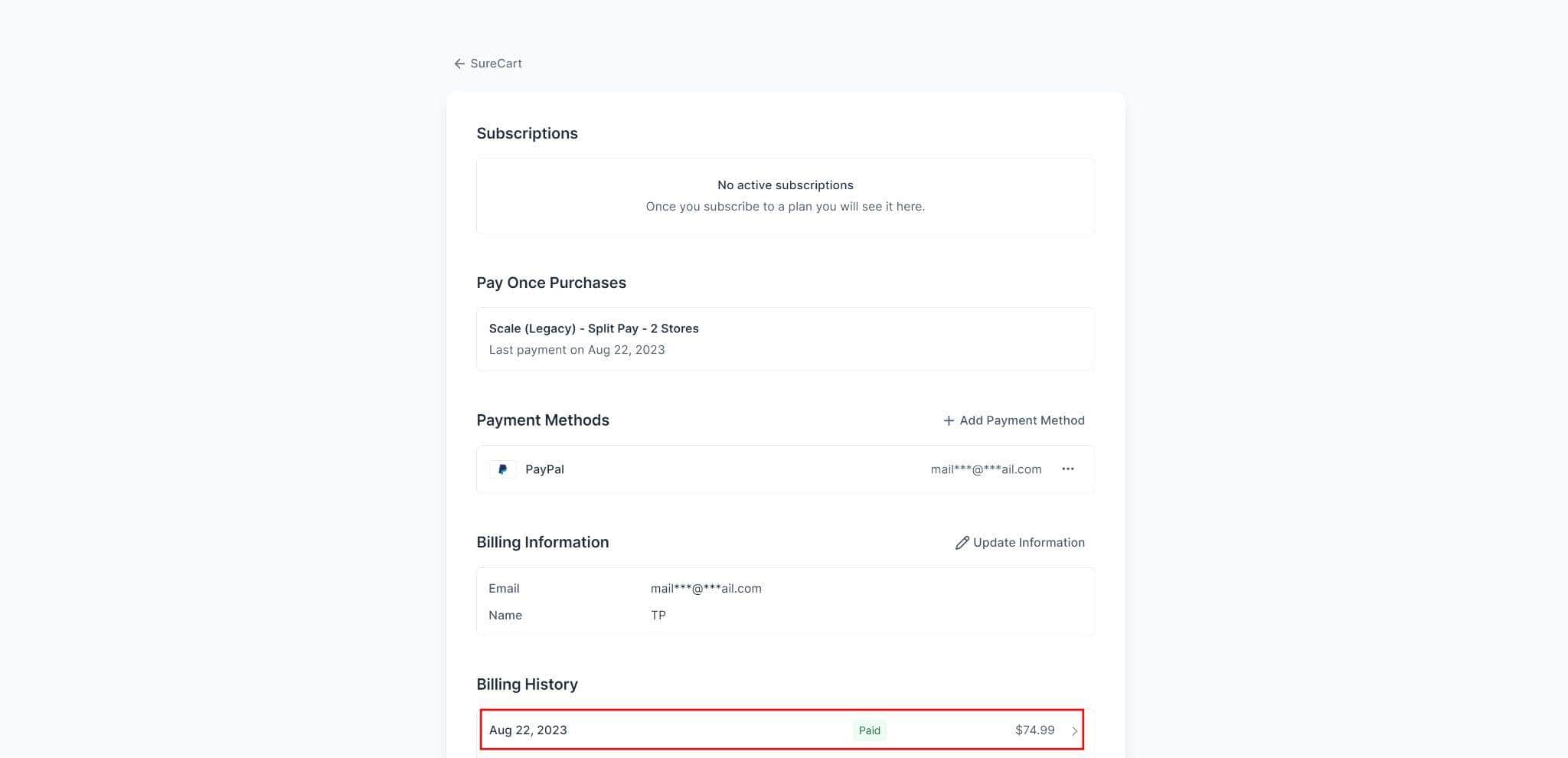 That’s all, now you know how to download invoices for any payment you made for SureCart