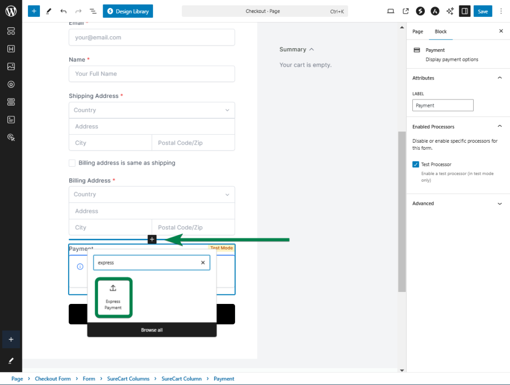 Adding the Express Payment block