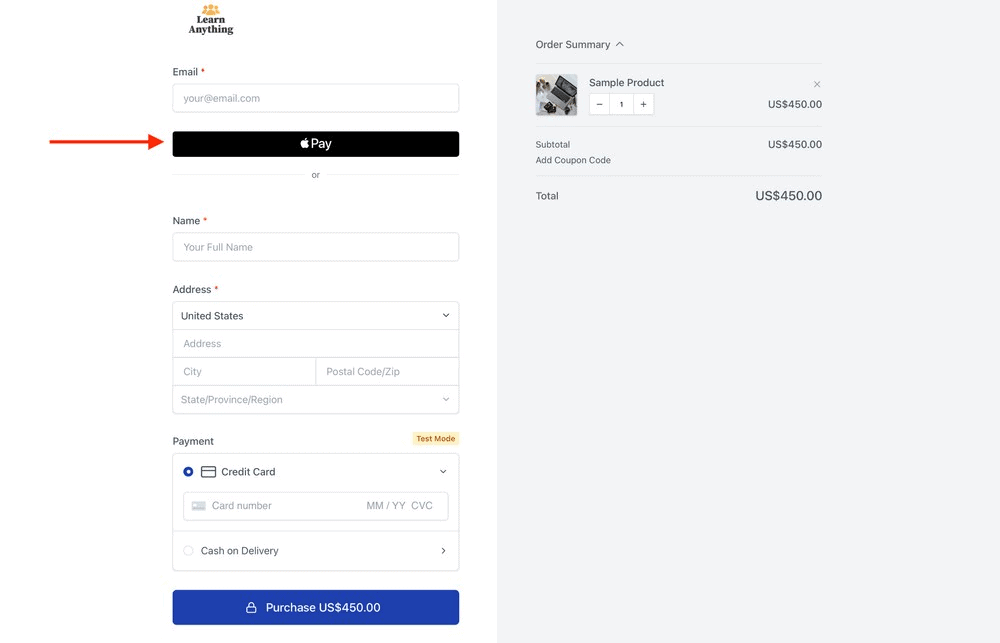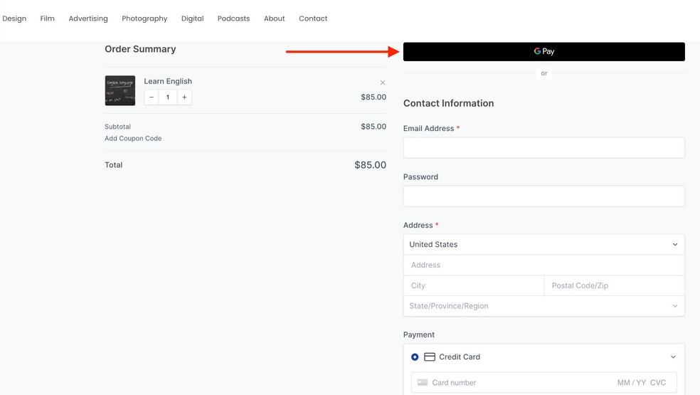 For example, if you enable express payments on your website and access it using Google Chrome, you will see the Google Pay wallet available for transactions.
