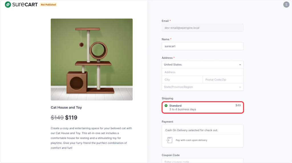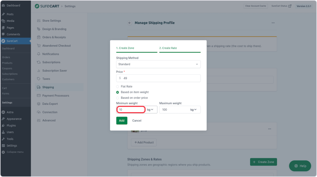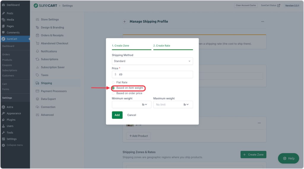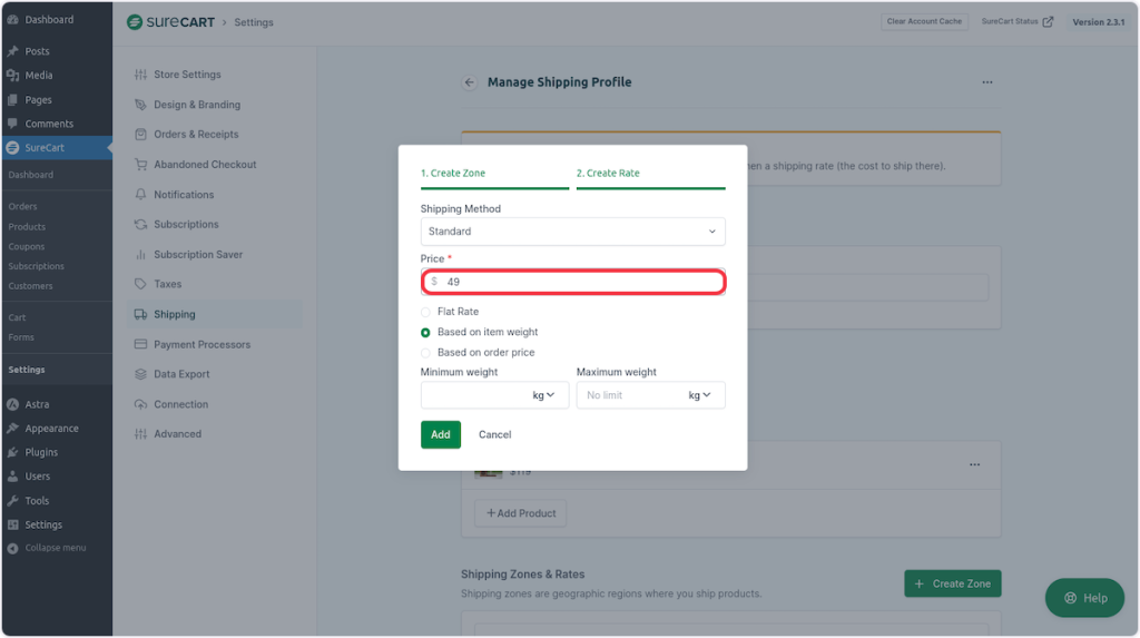 SureCart has an important feature called “Shipping.” It allows you to charge customers for shipping based on where they want their orders delivered.