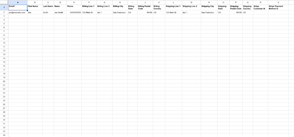 Here’s a template CSV file that you can refer to and create your file with real customer information.