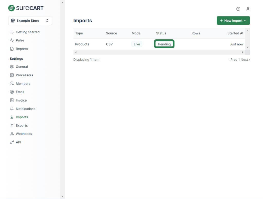 - The status of the import will be displayed as Pending. This indicates that the importing process has been initiated and is in progress.