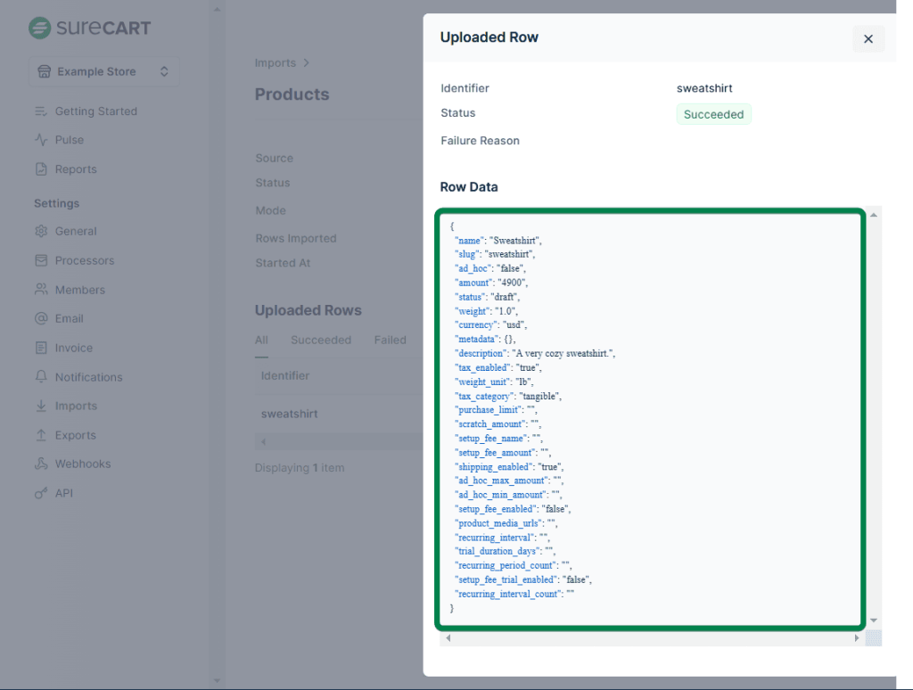 Your product data has been successfully imported into SureCart. Now, let’s take it to the next level! You can add some stunning product images, tweak the product status, and make any other changes you want to make your store look fantastic.