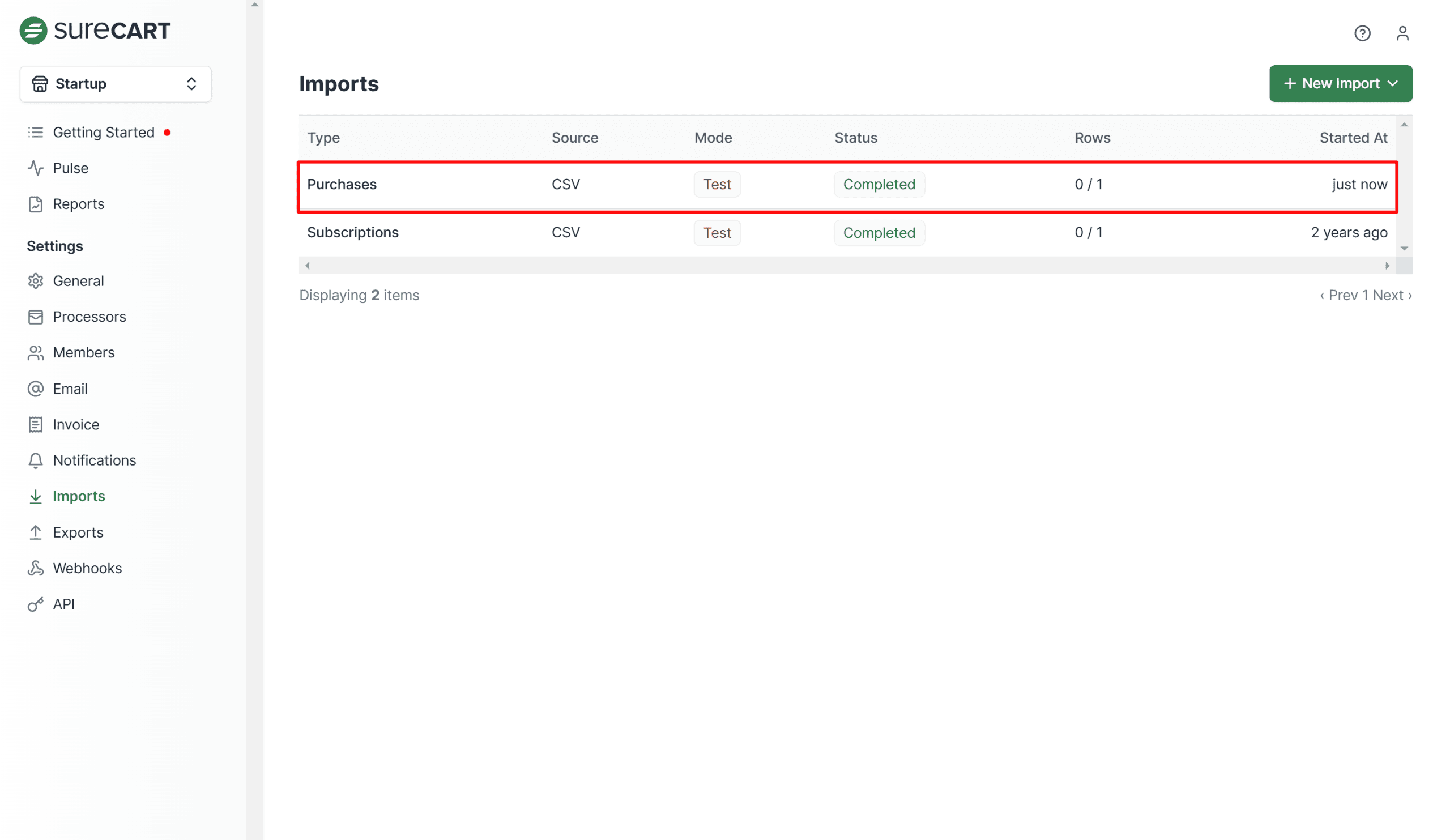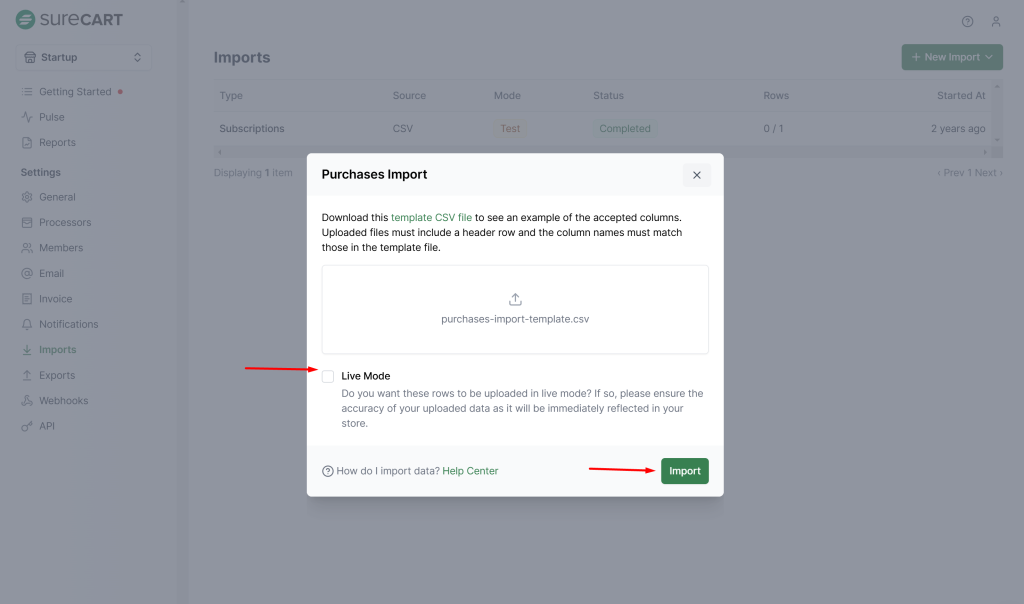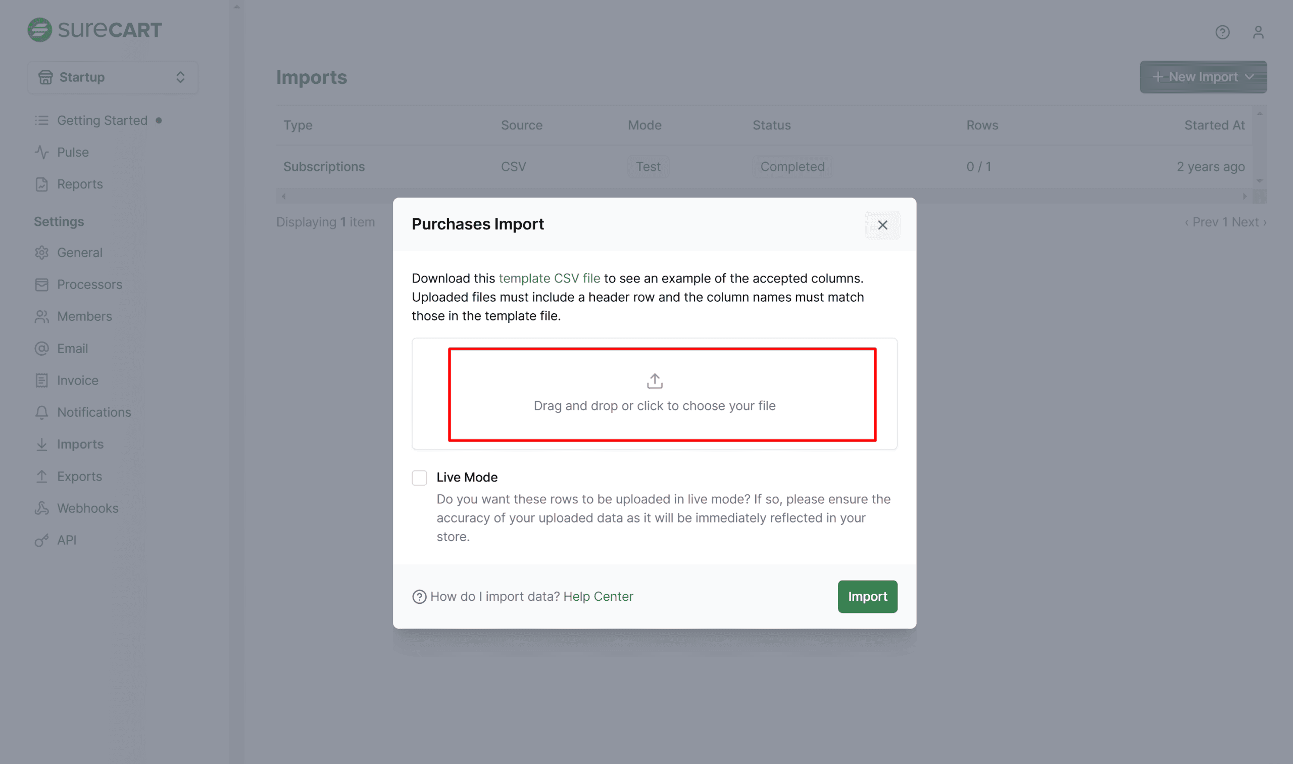 Once you have your CSV file ready, you can follow the instructions below to import your purchases into SureCart.