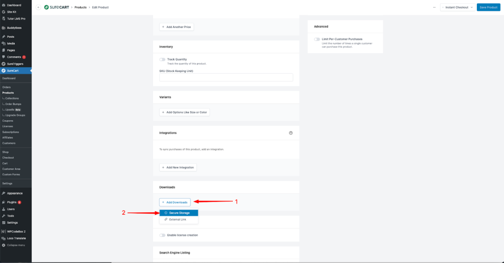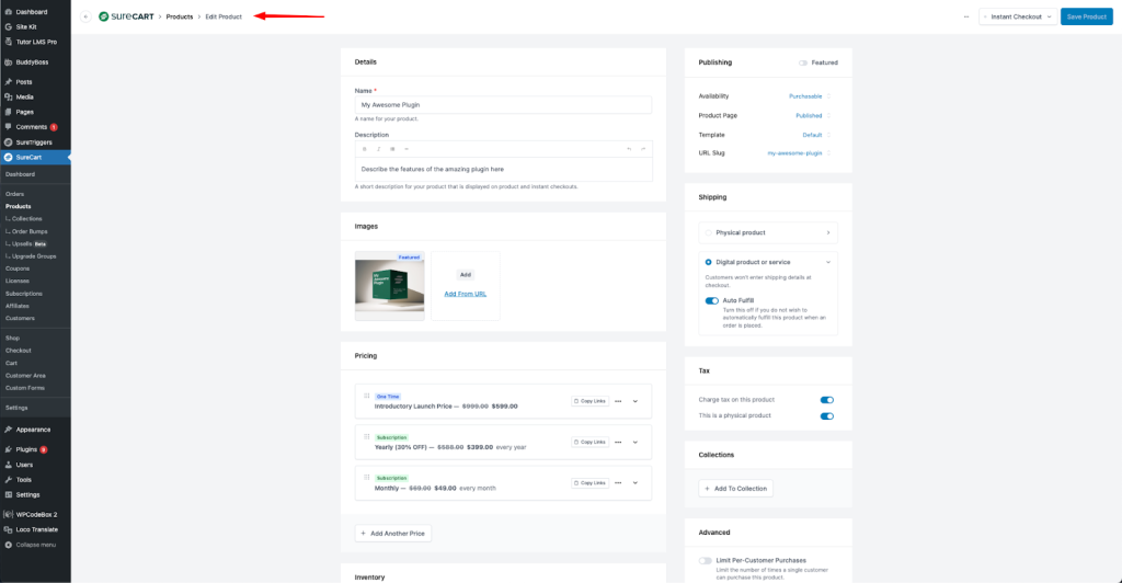 In your SureCart store, create a new product or edit an existing one so we can activate the license feature.