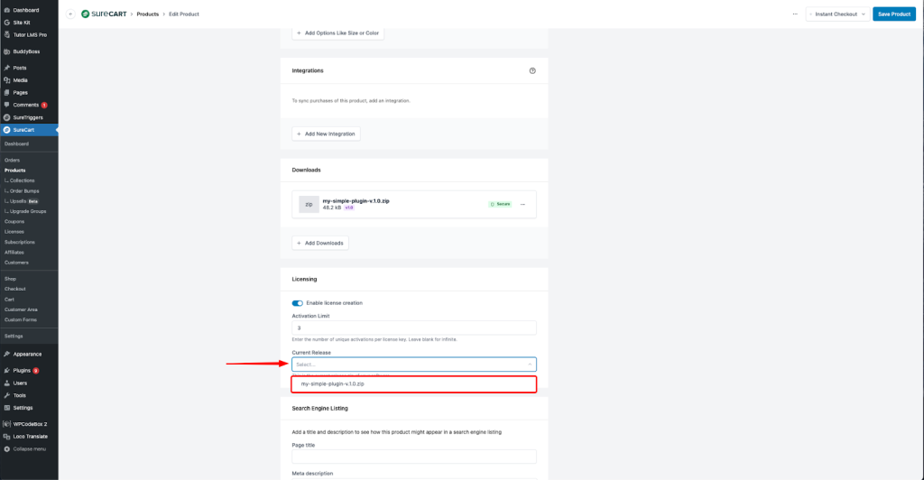 Add Your Plugin to Your Product in SureCart