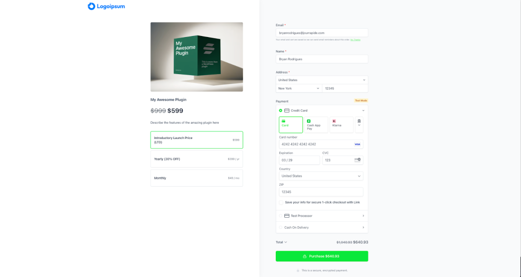 - Test Mode/Payments