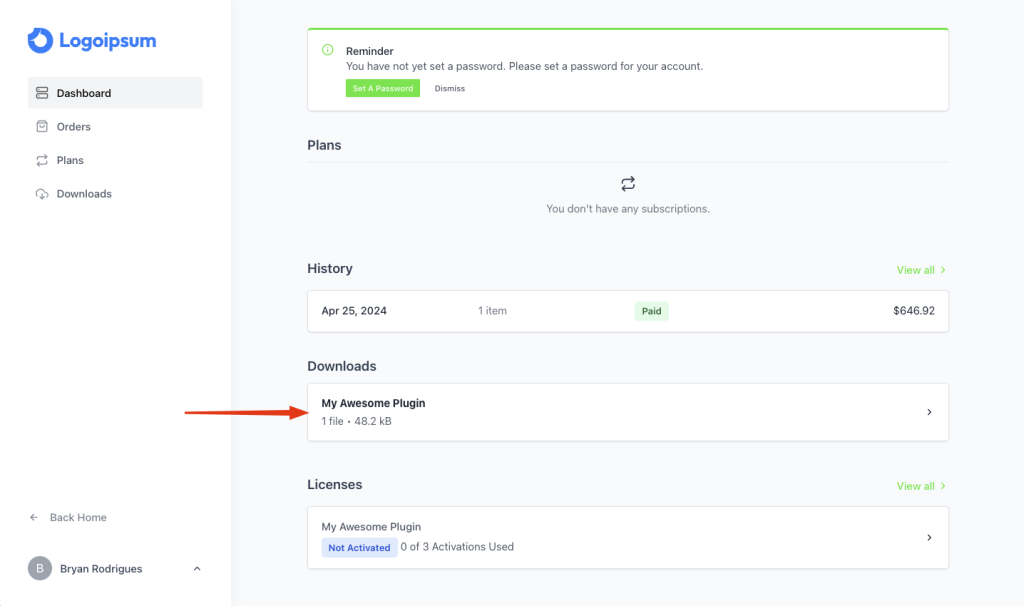 - In the customer dashboard, you will see that the license was successfully activated.