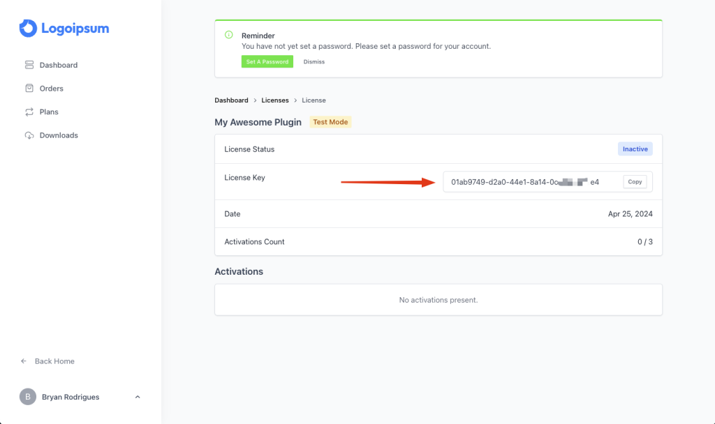 - Copy the License Key.