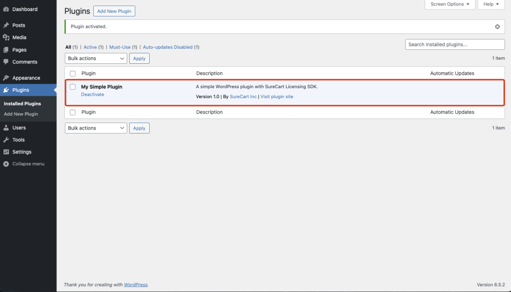 "description": "This is a simple WordPress plugin integrating SureCart Licensing SDK.",