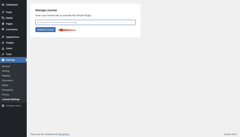 - Enter your license key and click on the “Activate License” button.
