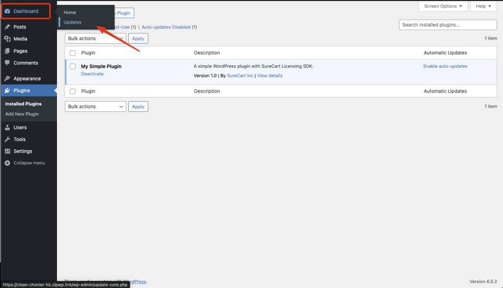 - In the client’s WordPress dashboard, click to check for a plugin update.