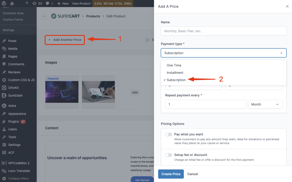 SureCart allows you to setup customer subscription models. You can simply create product purchase plans that customers can buy as subscriptions.