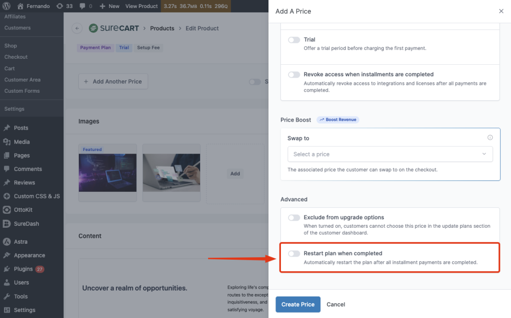 After setting up your SureCart store, Go to your WordPress dashboard.
