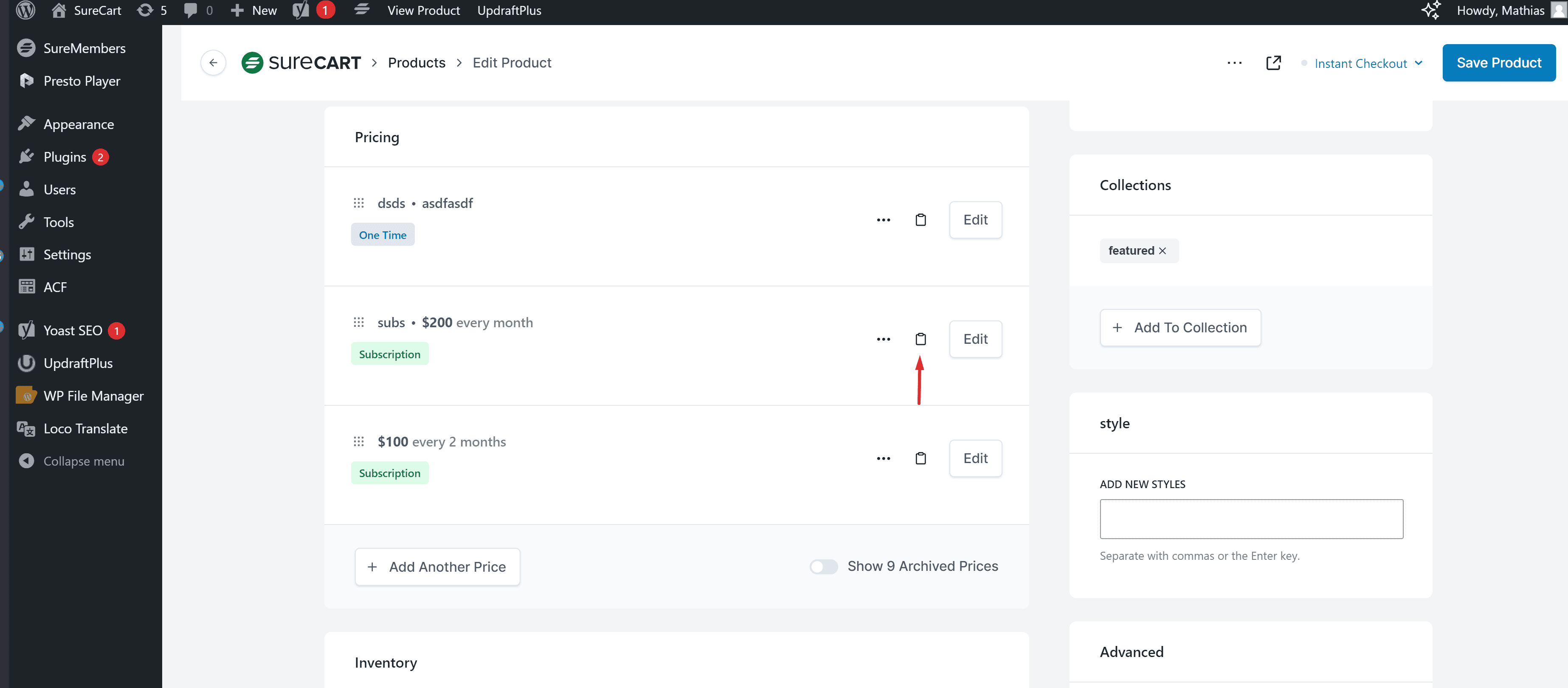 - Access your product on SureCart and select ‘Copy Links’ from the Pricing section.