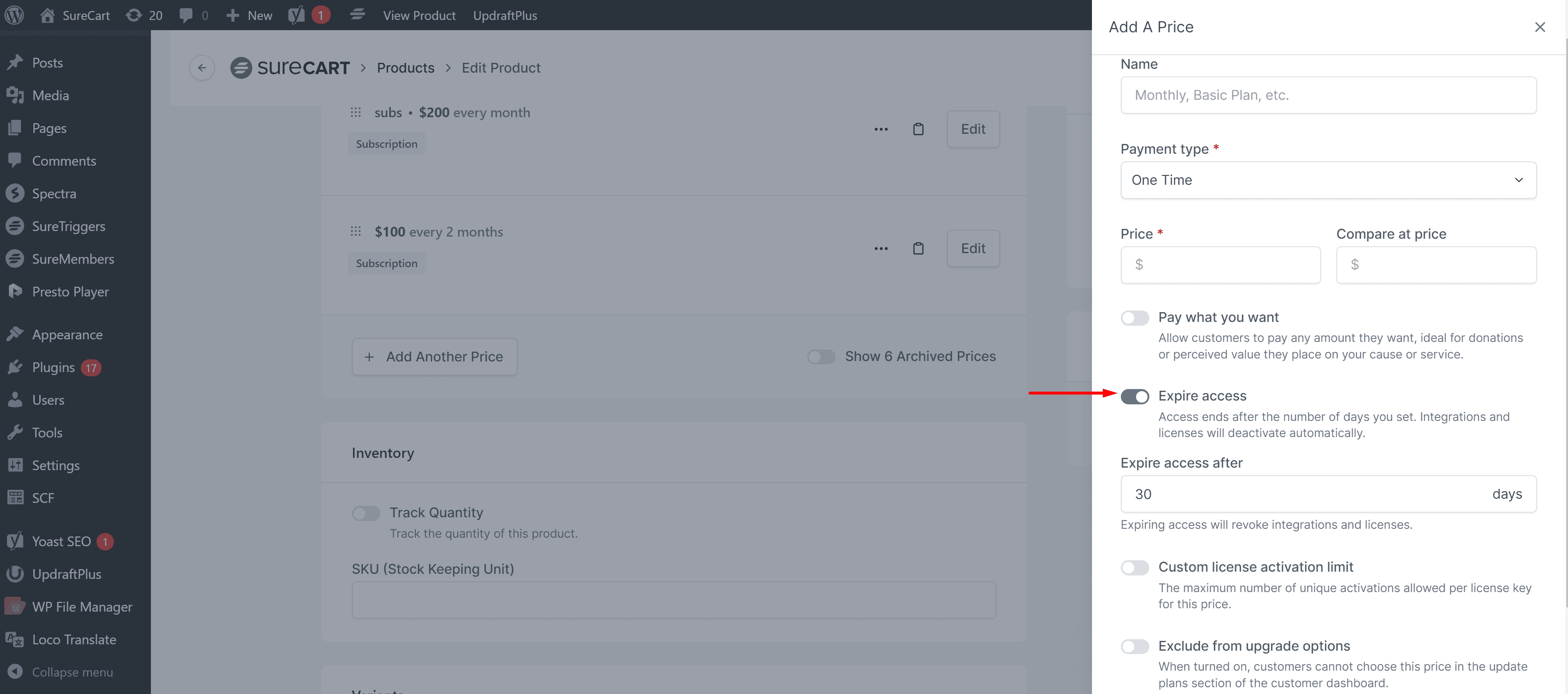Toggle the Expire access button and enter the number of days after which you want to revoke the product’s access.
