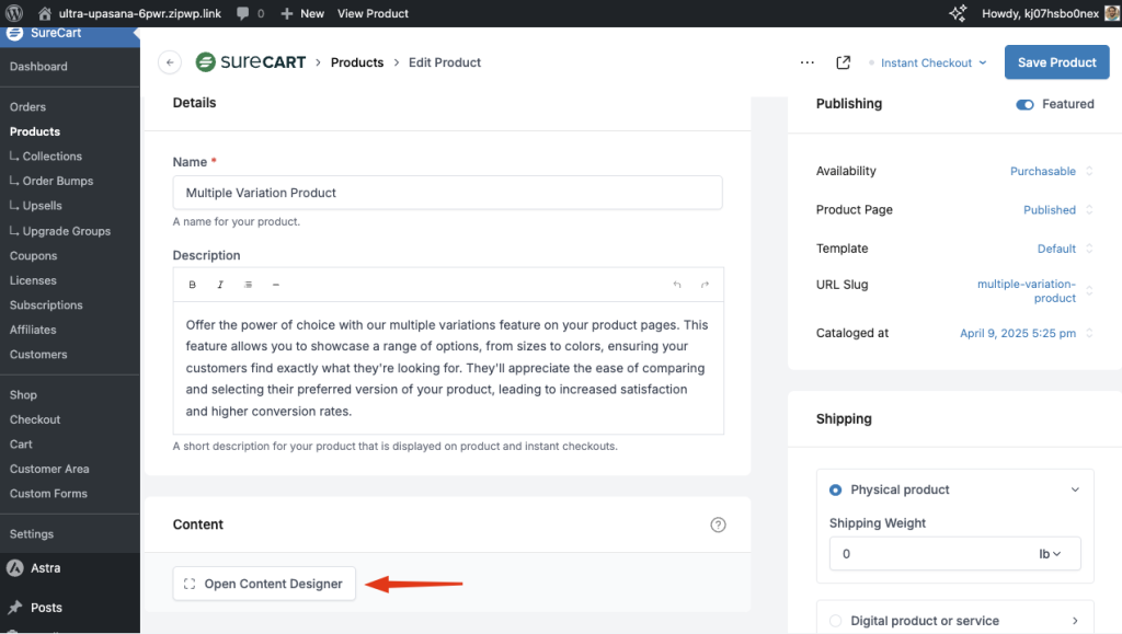 - Go to the product where you want to create content in Bricks and click on Open Content Designer to start customizing.