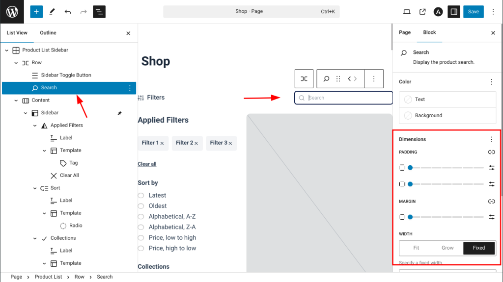 Your customers have the ability to search for specific product within your list. In case you don’t want to show the search, you can simply remove this block.