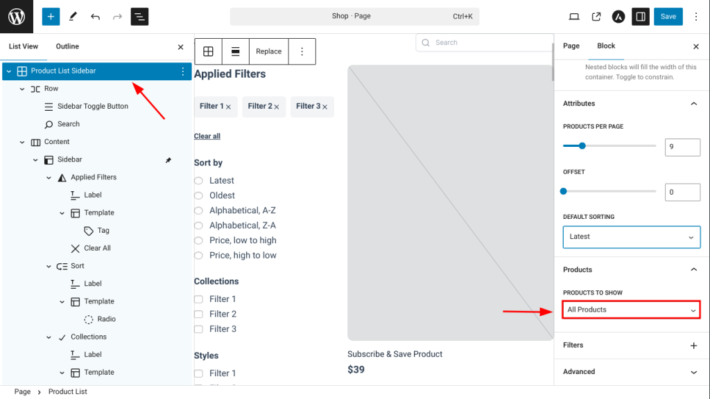 Select which products you want to display on your product list. You can either show all, featured, or hand-picked products based on your preference.