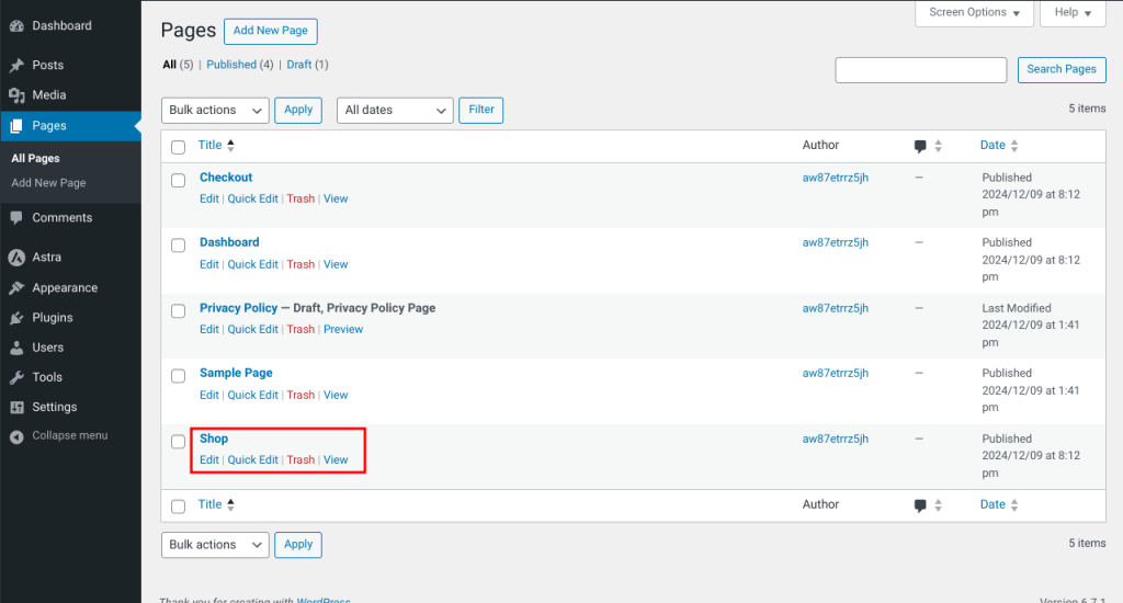You can find this page under the Pages section in your WordPress dashboard.