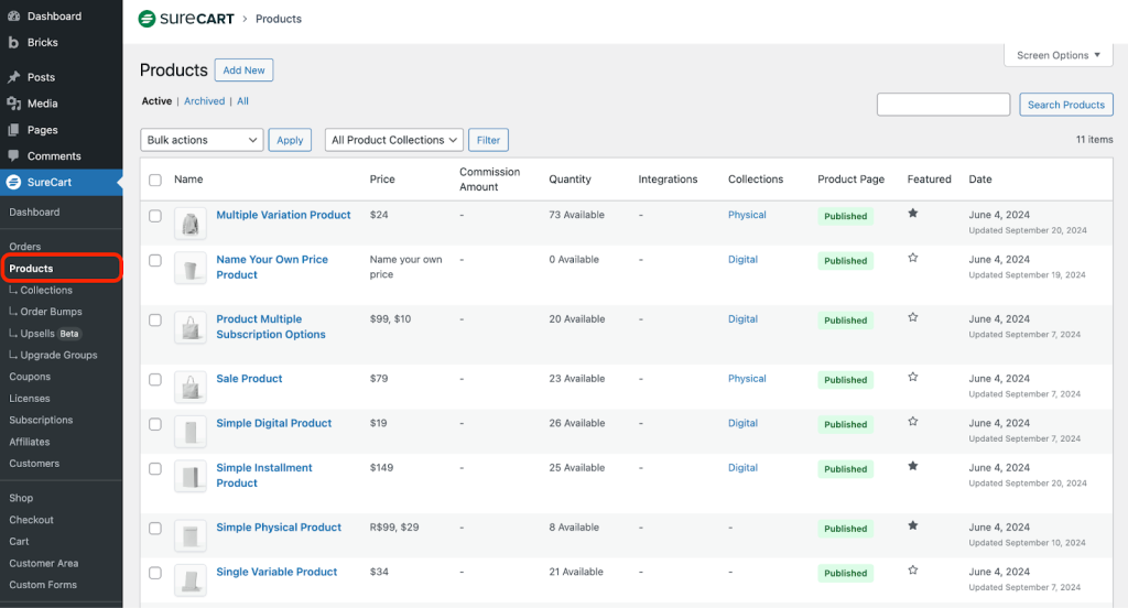 - Go to SureCart > Products and select any preferred product.