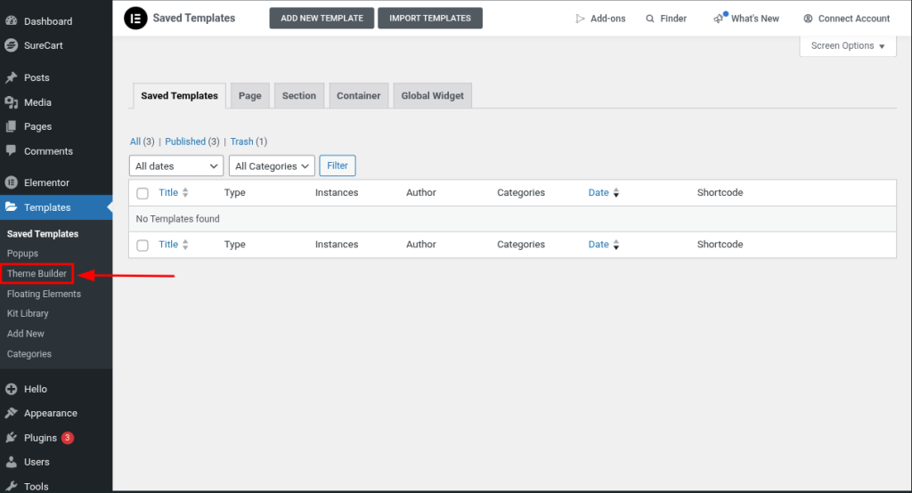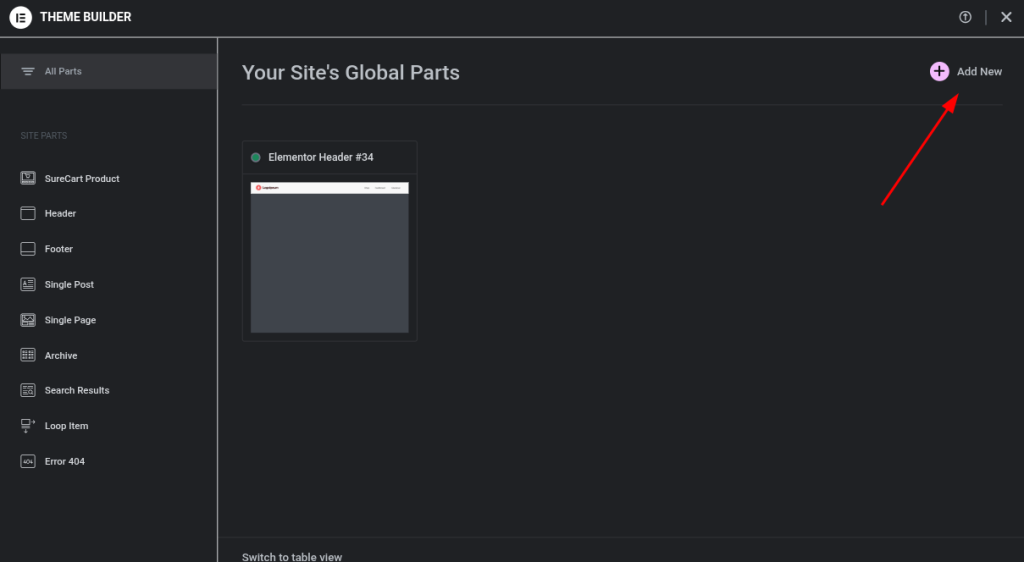 - Click the Add New button (+) in the top-right corner of the Theme Builder interface