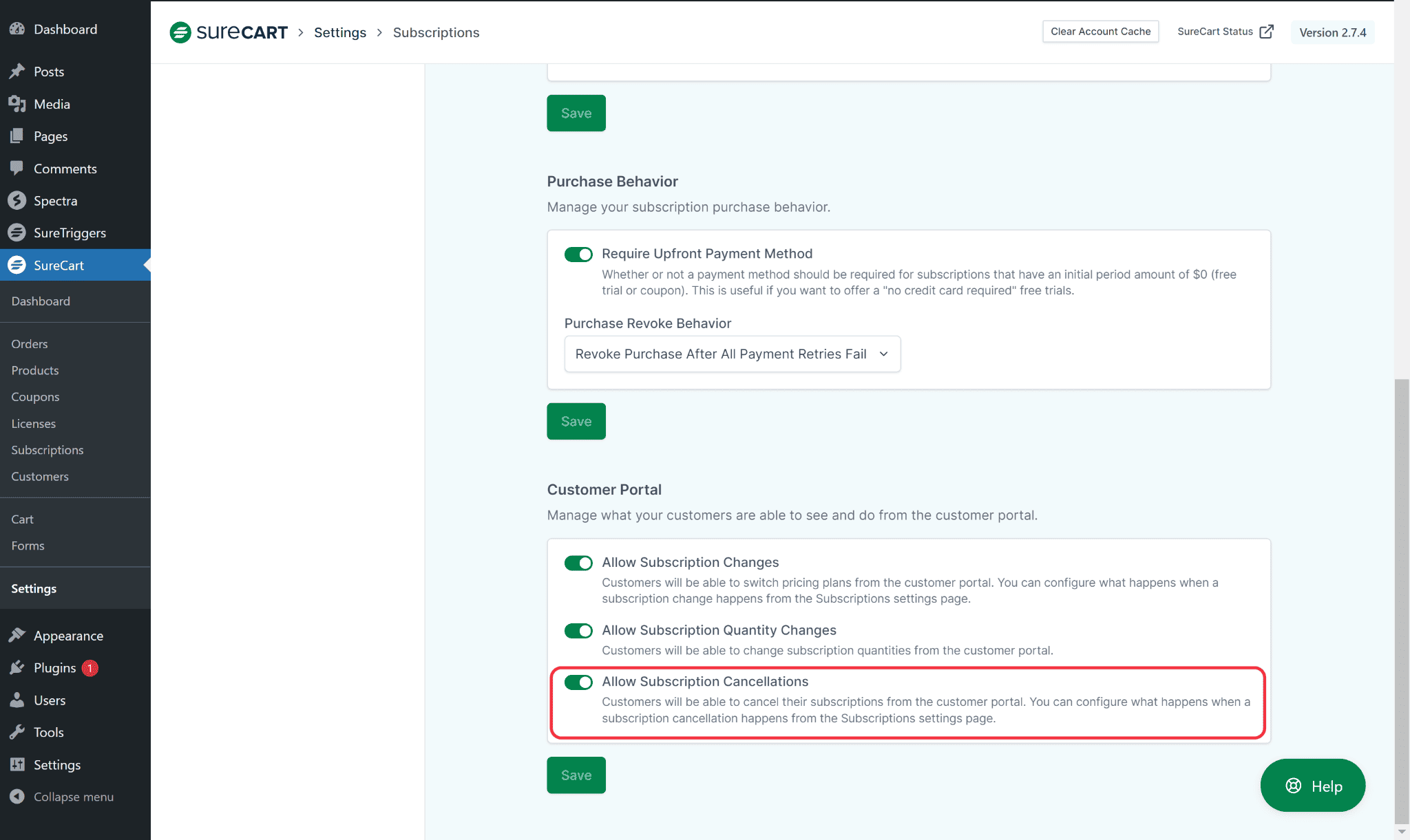 Allow Subscription Cancellations: Enabling this feature allows your customers to cancel their subscriptions from their customer portal.
