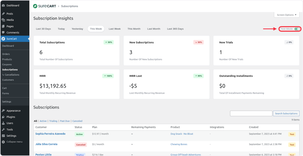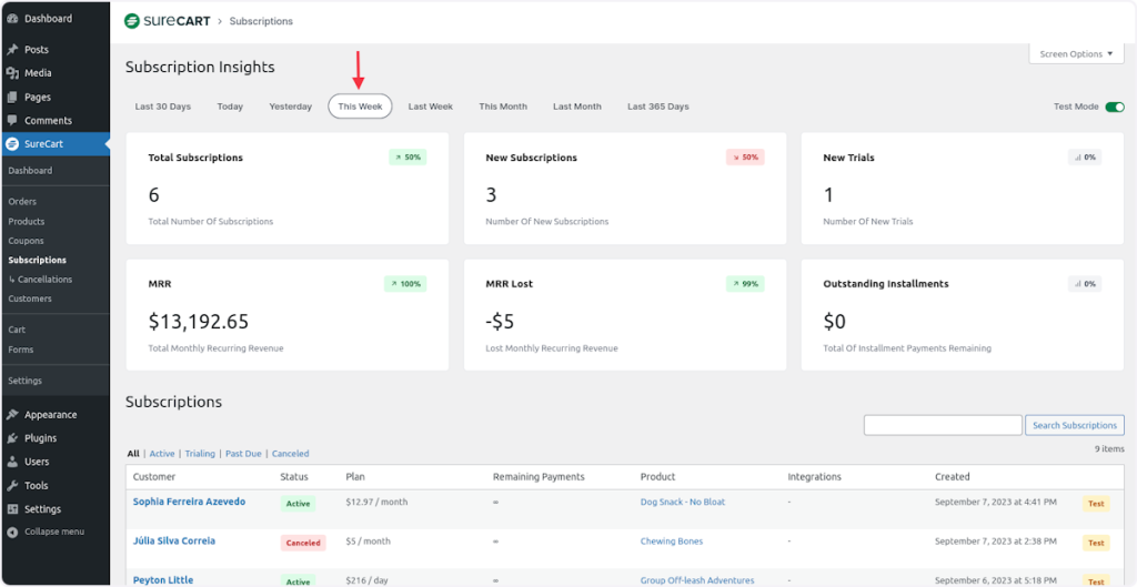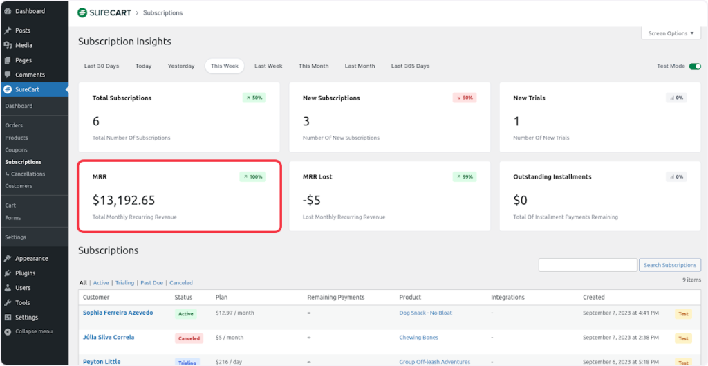 In this article, we are going to cover how the subscription metrics are calculated in SureCart so you get a better understanding of the insights.