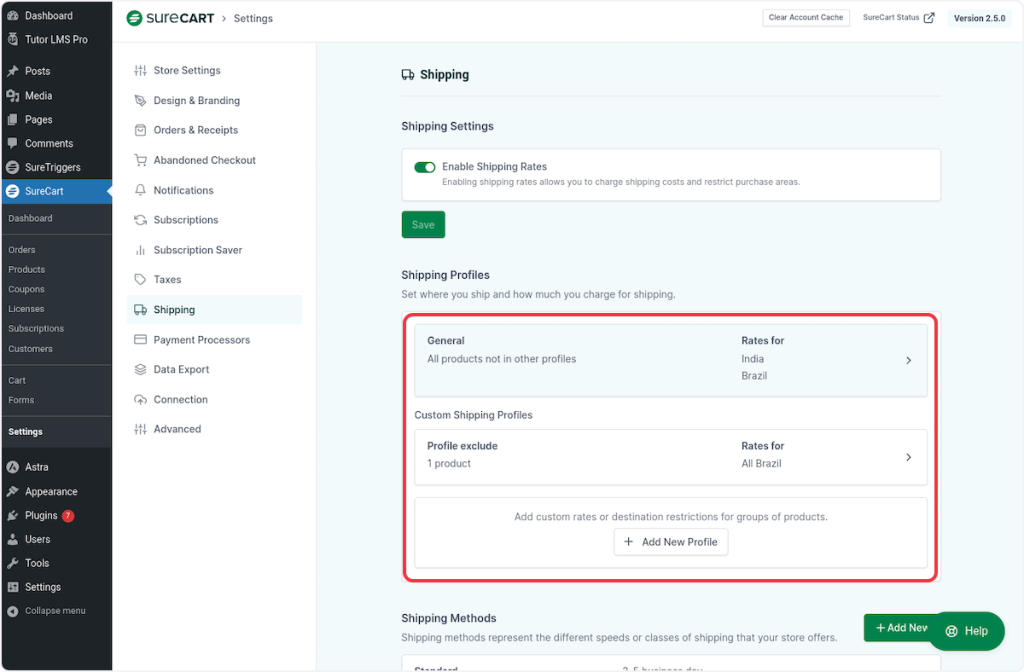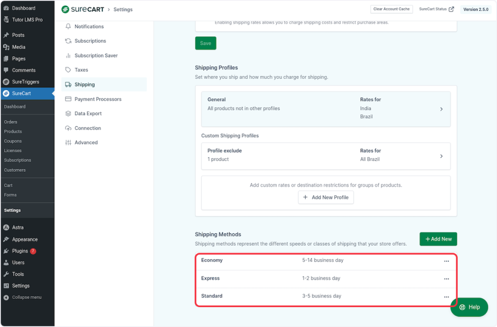 In SureCart, there are three default shipping methods to get you started. However, you have the flexibility to tweak and personalize them to fit your business needs.