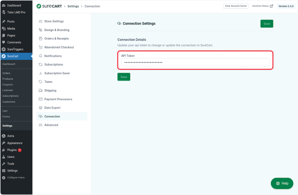 Think of the API token as the key that opens the door for SureCart and WordPress to work together seamlessly and manage your online store effectively.
