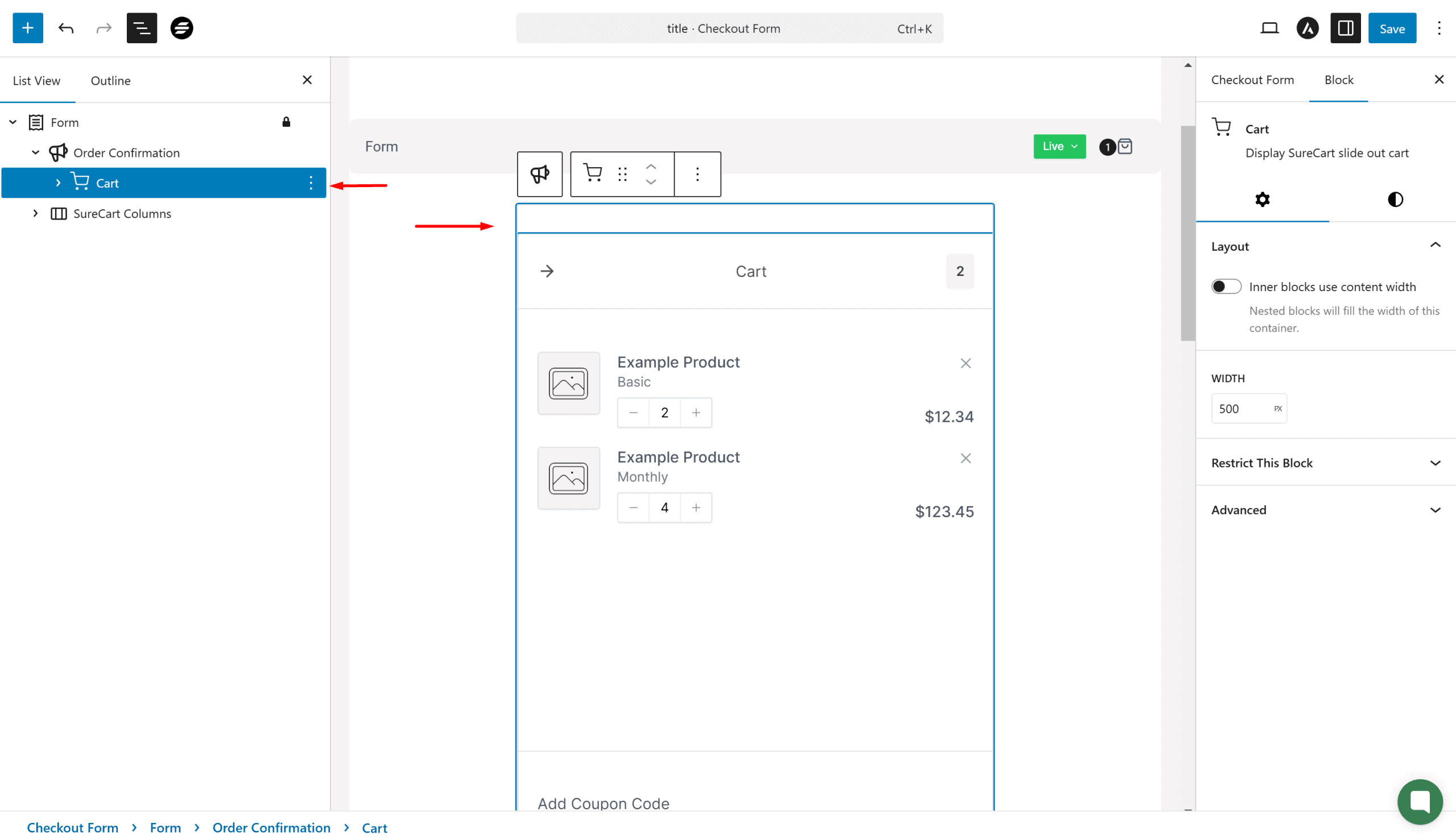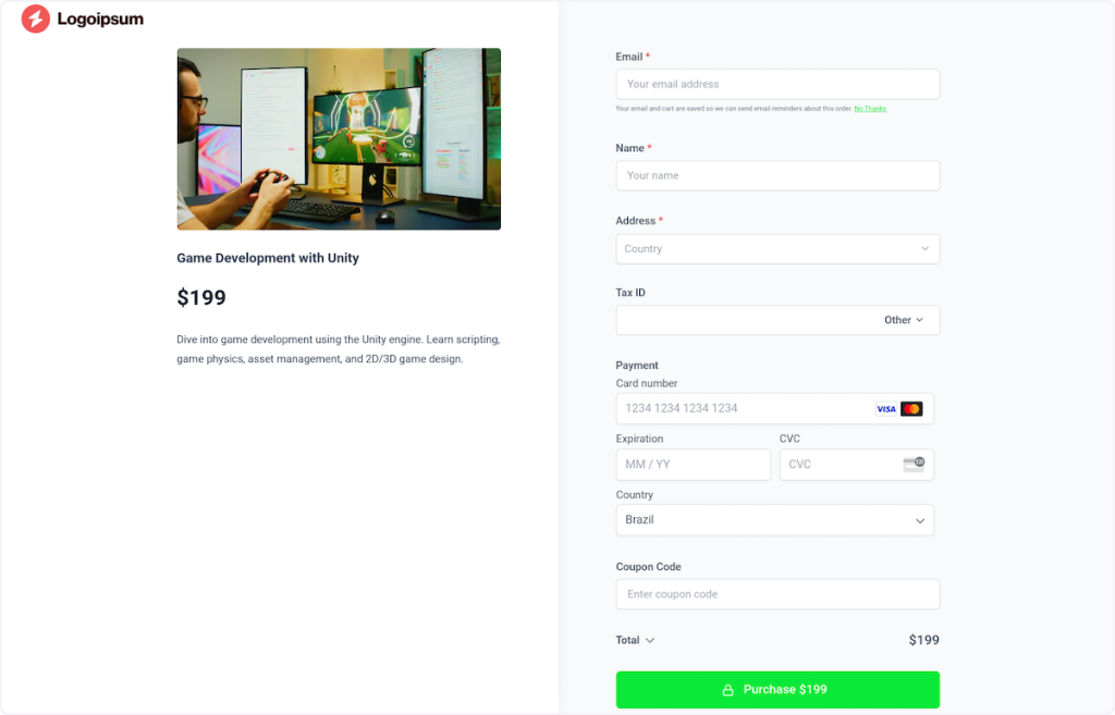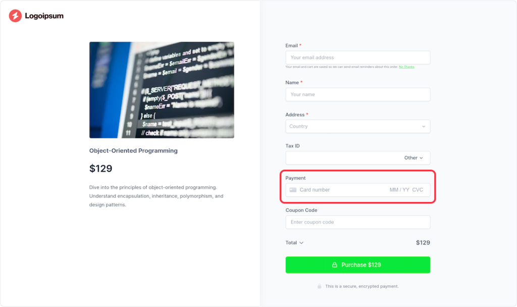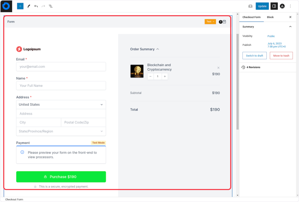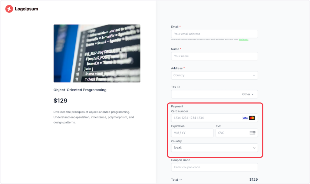 - Product Pricing: In addition to personal details, the checkout form displays the pricing of the products that customers or merchants previously selected. Customers can also adjust quantities, remove products, and apply coupons to tailor their order exactly as they want it. It’s like reviewing and fine-tuning the details of your purchase before finalizing it.