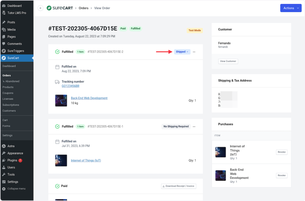 Fulfillment in SureCart is like the engine that powers your online store’s delivery system. It covers everything from the moment a customer clicks “buy” to the joyful delivery of their order.