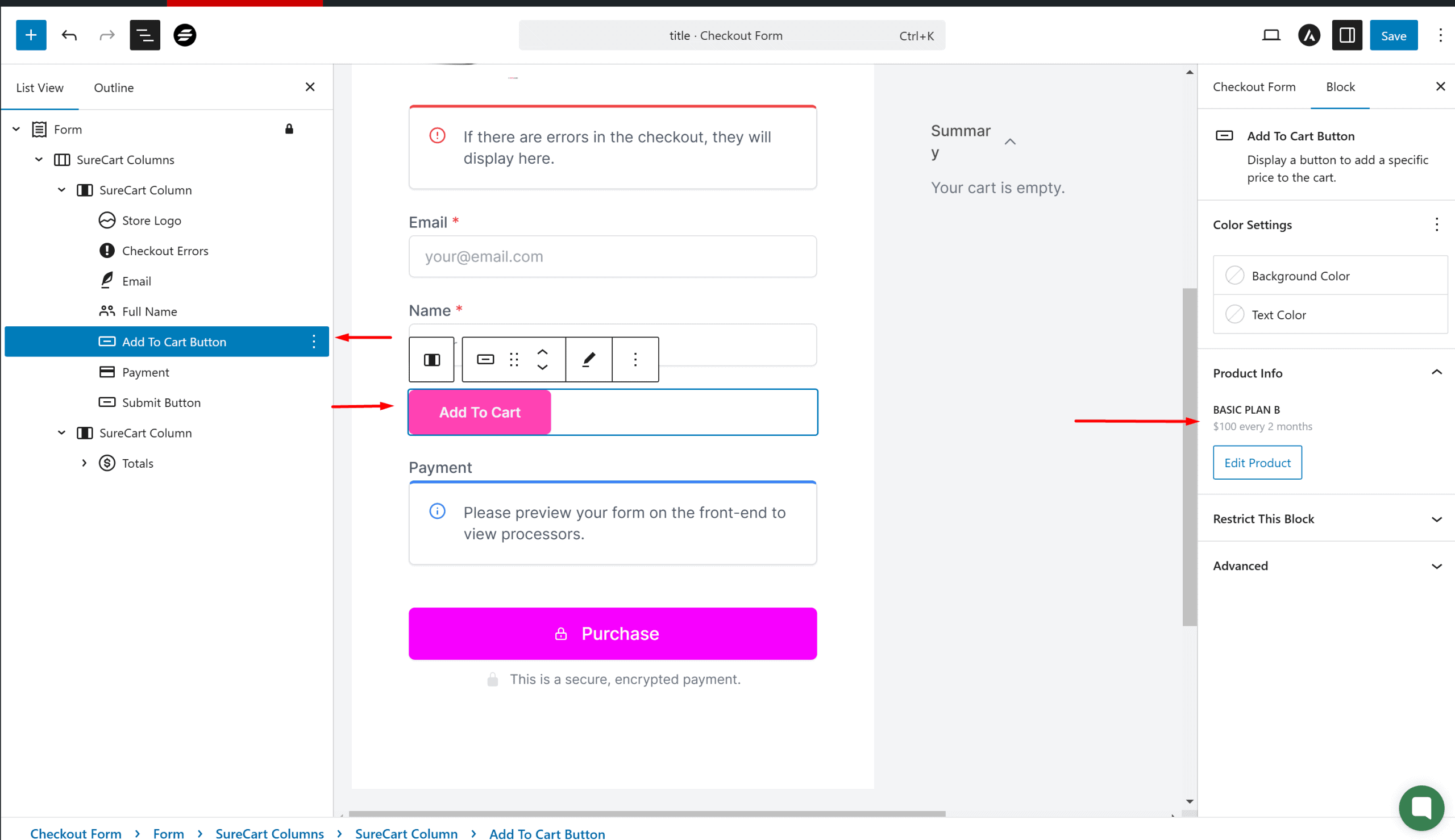 - Tailored Design: The beauty of the SureCart checkout form is that users can customize and design it to match their specific needs and the look and feel of their website. It’s like choosing the color and layout of your store’s checkout counter.