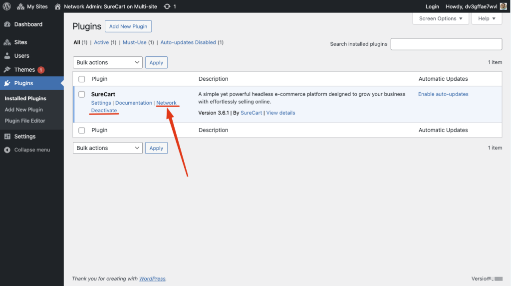 - Deactivate SureCart from the Network: Once you’ve updated to a subdomain-based setup, log in to the Network Admin area and deactivate SureCart from the entire network.