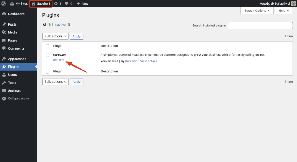 You should also avoid network activating SureCart. Instead, only activate the plugin on the specific subsite where you plan to run your store. This keeps everything focused and ensures the plugin only runs where it’s needed.