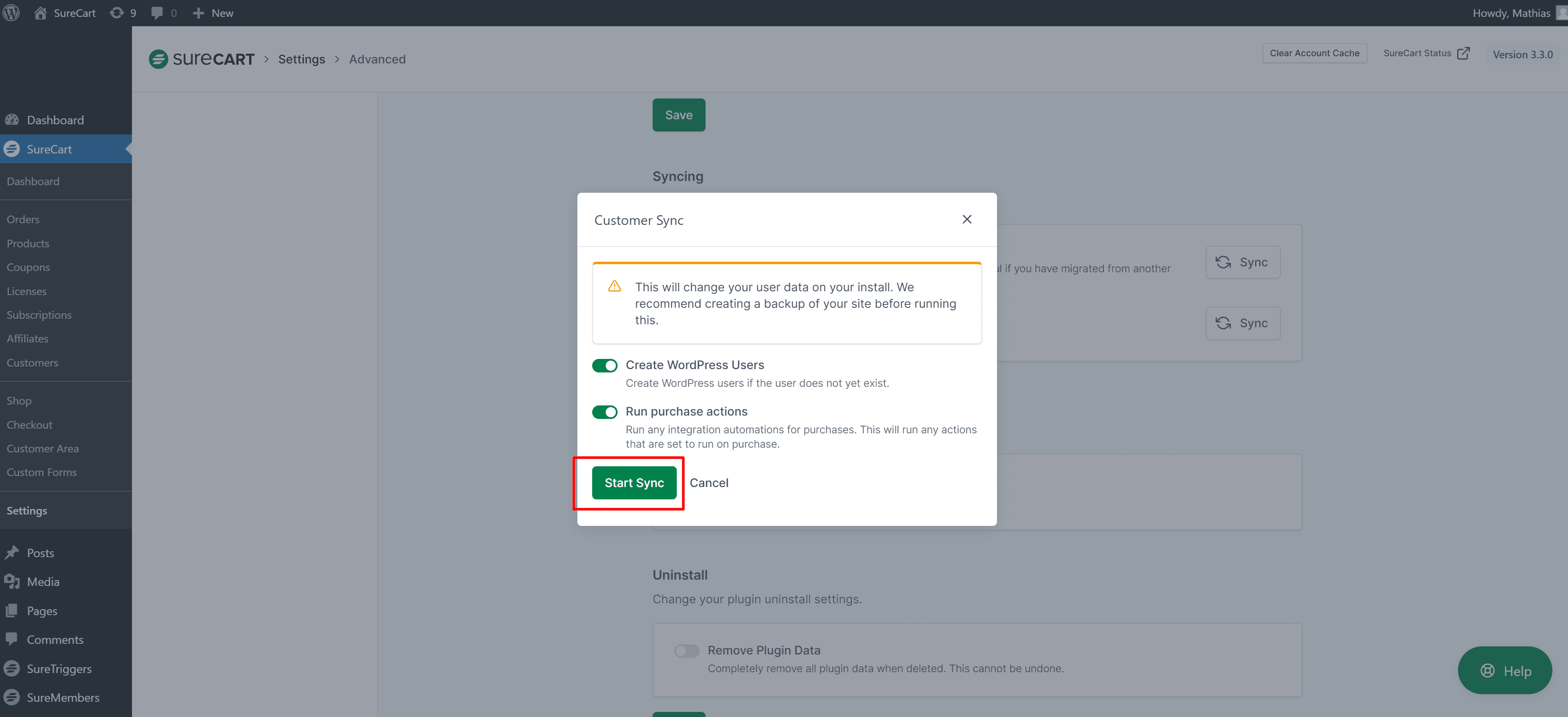 Syncing SureCart customers with WordPress is vital to connect the two SureCart cloud and your WordPress site smoothly. SureCart stores data in the cloud, and syncing links this data with your WordPress site.