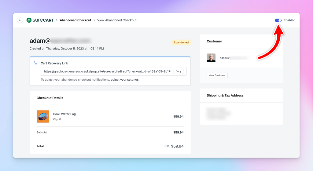 - Improvement: Ability to turn off/on individual abandoned checkout flows for a customer.