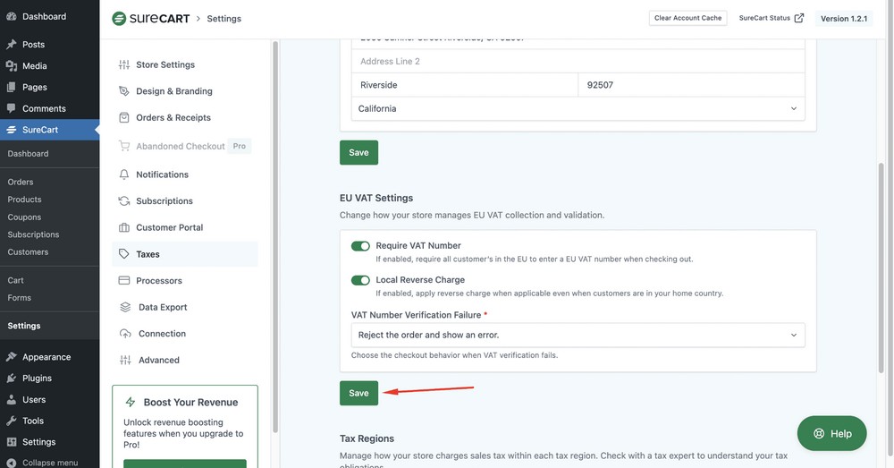 Now, it’s time to set up sales and EU VAT taxes in SureCart.